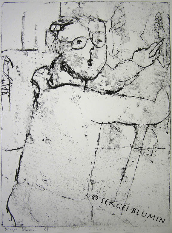 © S. Blumin, Artist at Work, signed, unframed author's print of oil tracing on paper, 1988