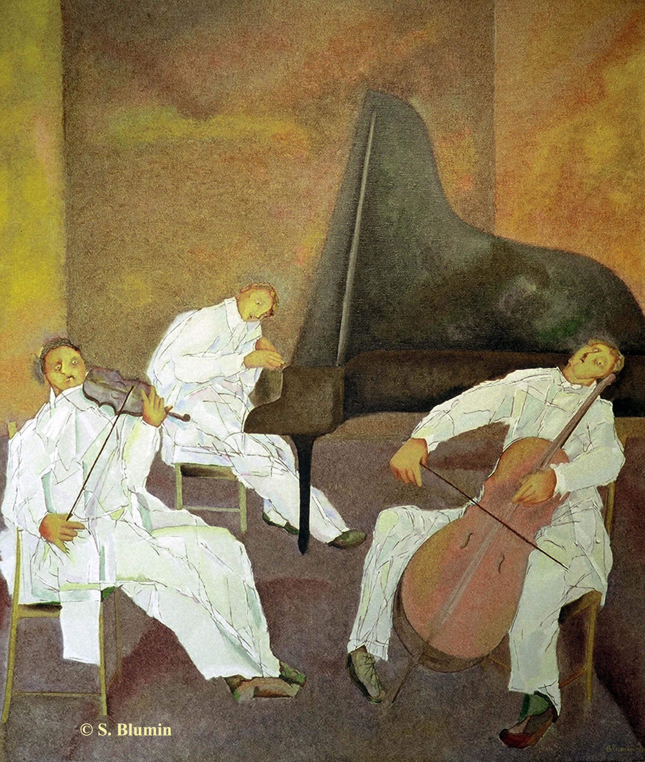 © S. Blumin, The Trio, signed, unframed author's print of oil painting, 1992