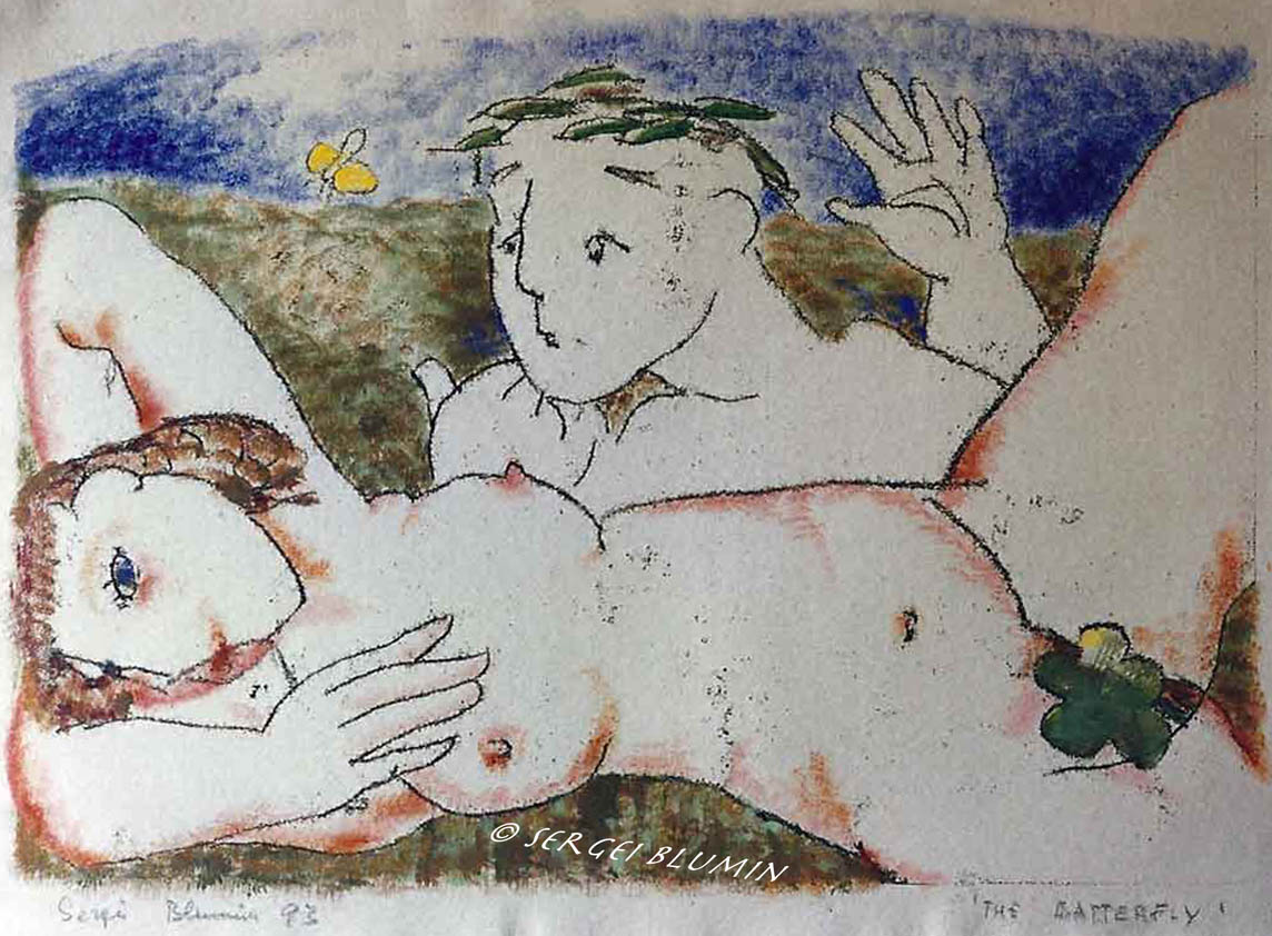 © S. Blumin, Butterfly, signed, unframed author's print of tempera, 1993