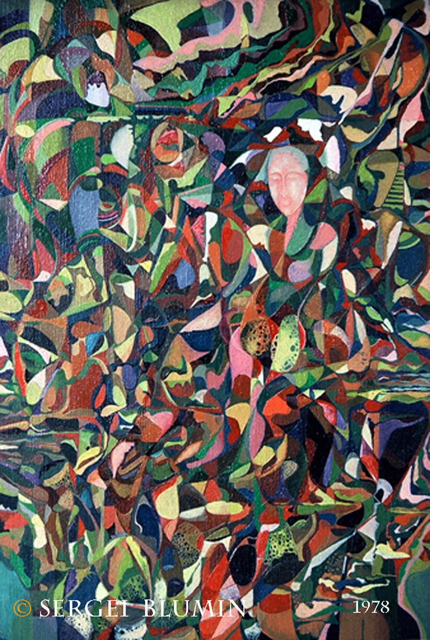 © S. Blumin, Human World, signed, unframed author's print of oil painting, 1978